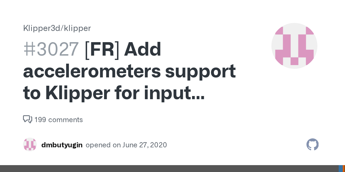 22.10.2020 · amongst the beta testers it's a small amount of duet users vs a horde of klipper users. This topic has been deleted. Input shaping adjusts the period of acceleration and/or breaks the acceleration up into a number of steps of different sizes, so that later acceleration changes induce ringing equal and opposite to the ringing induces by earlier acceleration changes. Nonetheless i was curious about klipper, specifically the feature of input shaping.